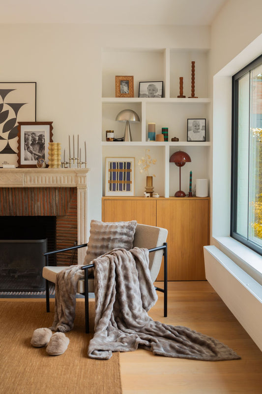 Plaid XL fausse fourrure taupe