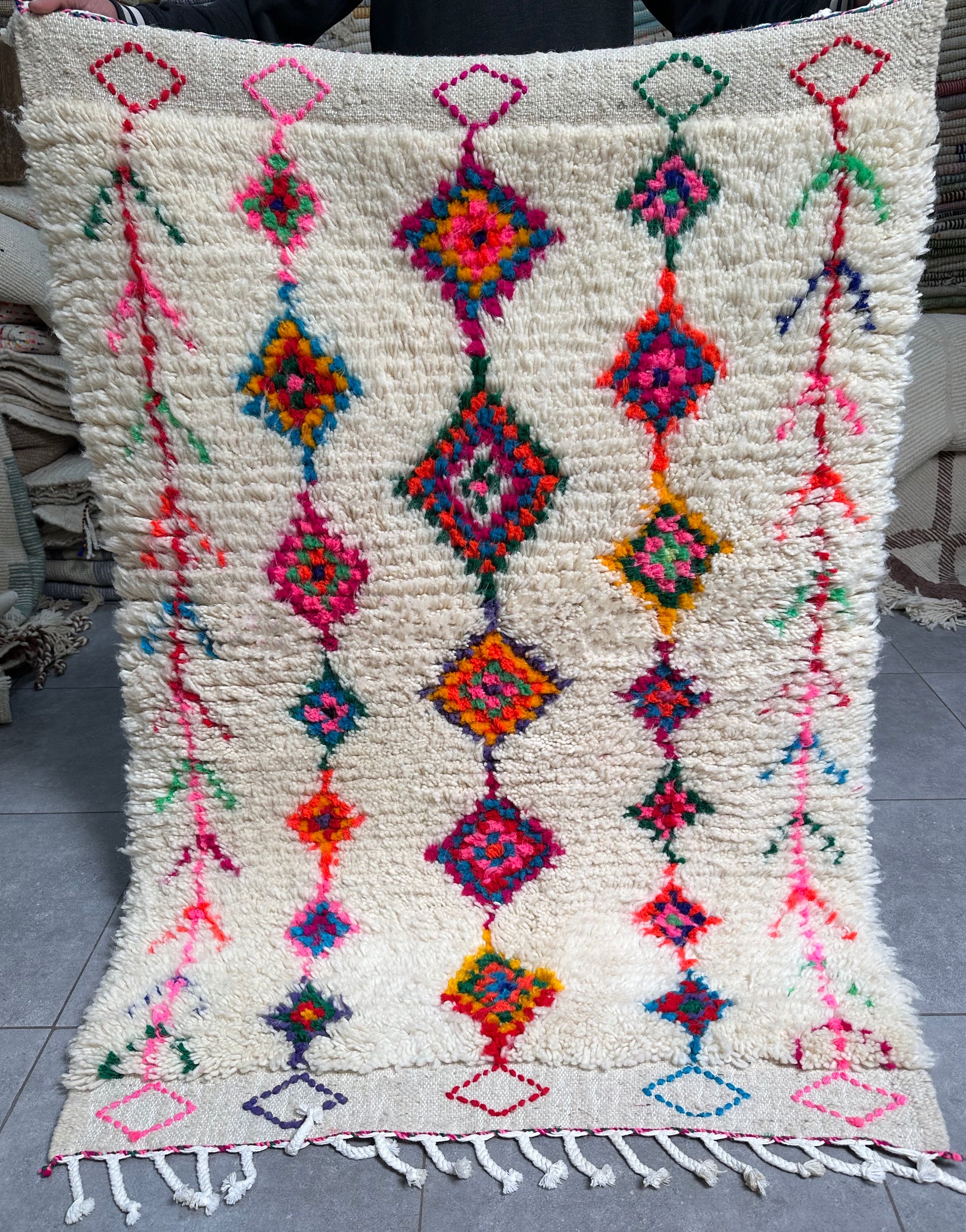 Pièce unique 100% laine, tissée à la main au Maroc dans les montagnes de l'Atlas.