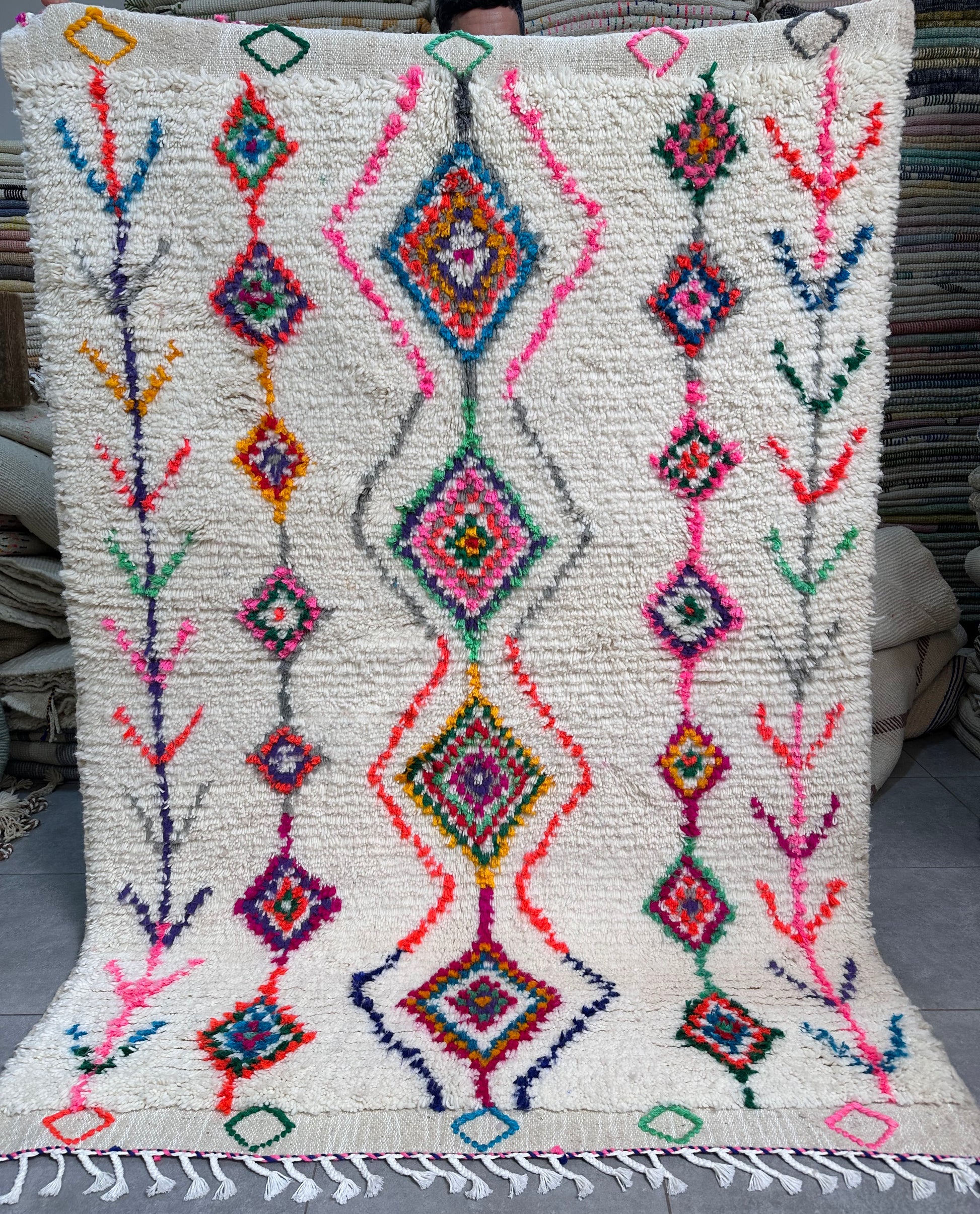 Pièce unique 100% laine, tissée à la main au Maroc dans les montagnes de l'Atlas.