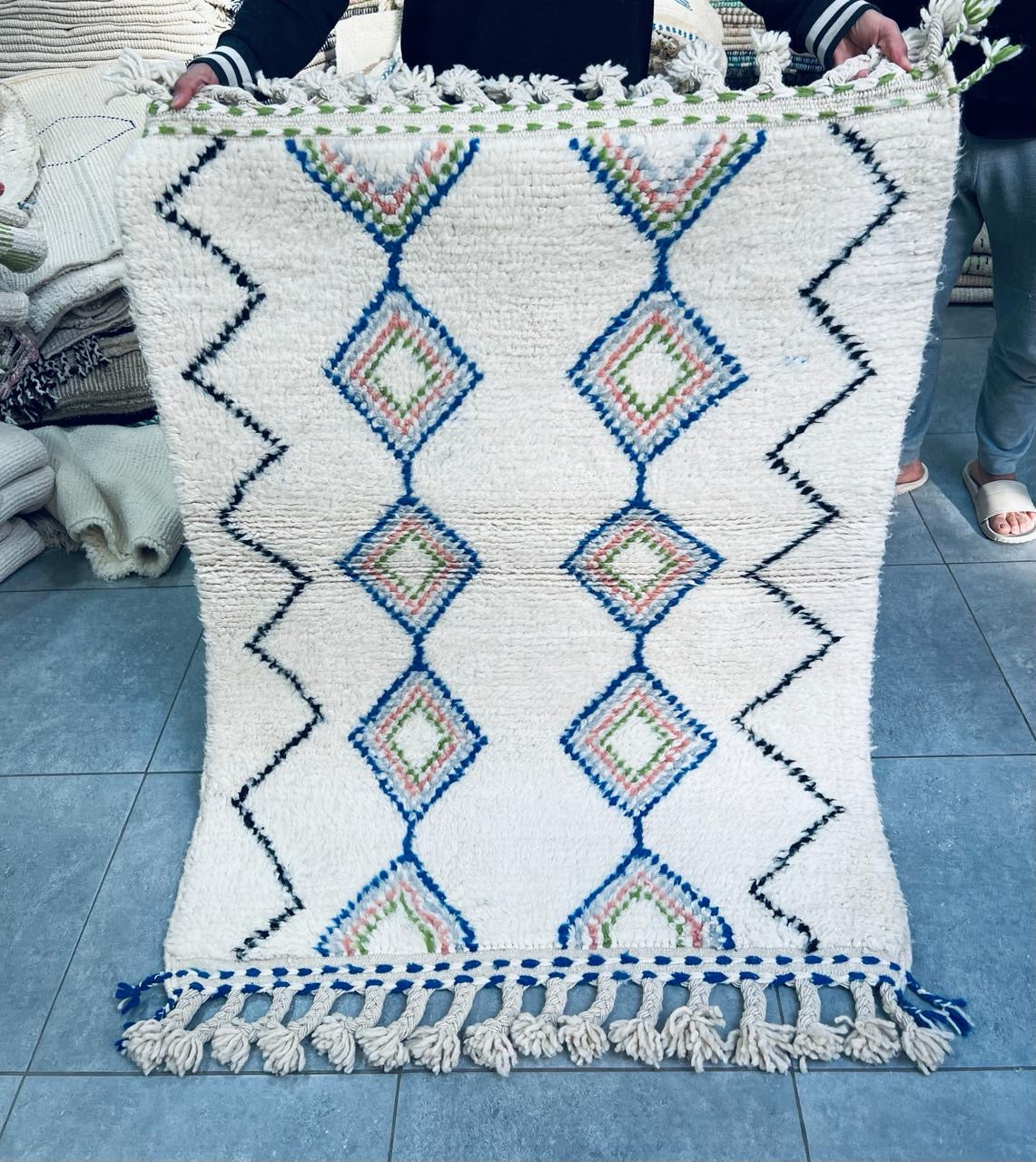Pièce unique 100% laine, tissée à la main au Maroc dans les montagnes de l'Atlas.