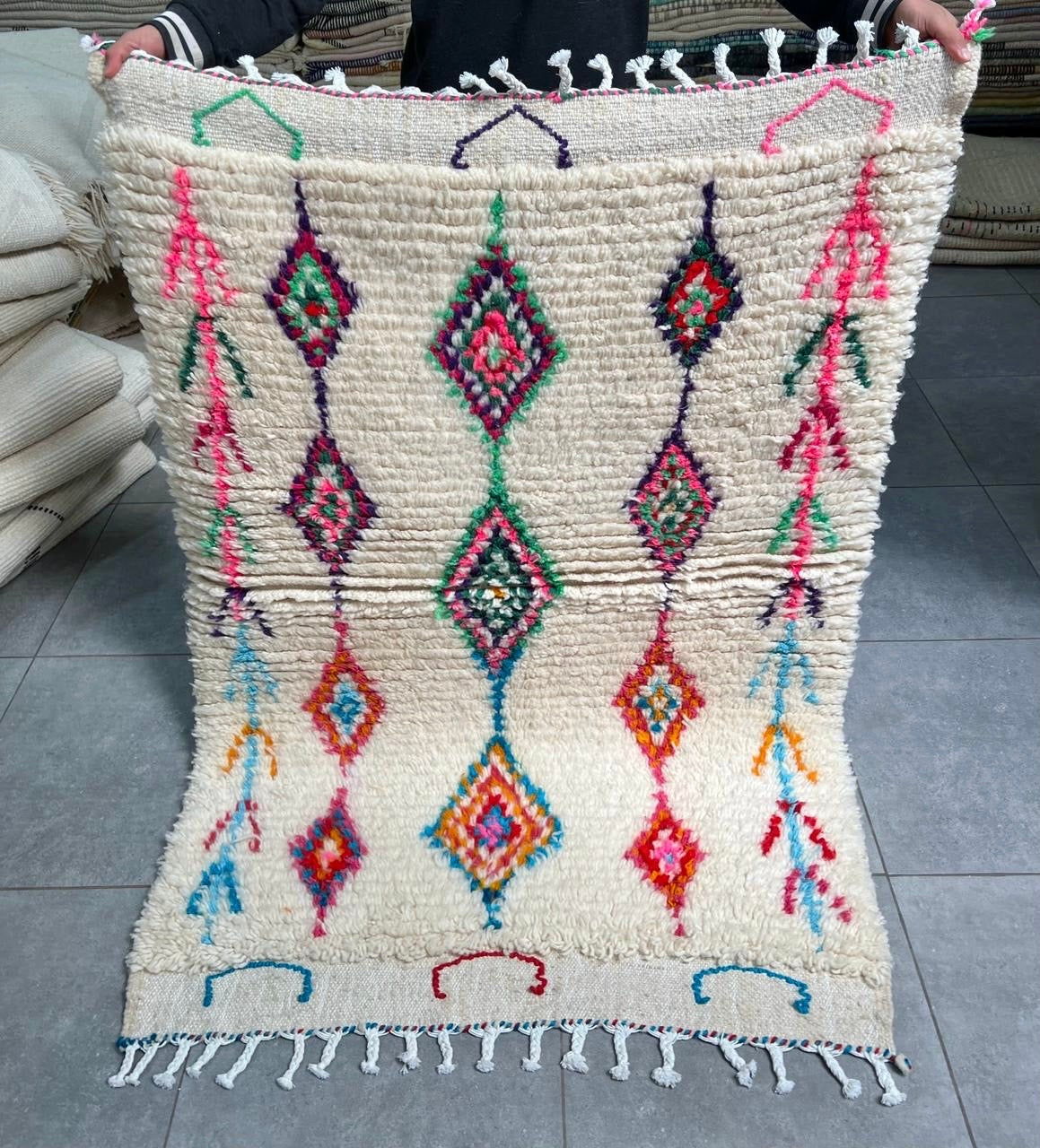 Pièce unique 100% laine, tissée à la main au Maroc dans les montagnes de l'Atlas.