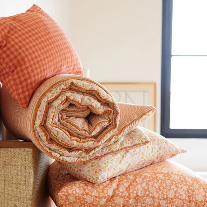 Edredon fleuri rose et orange