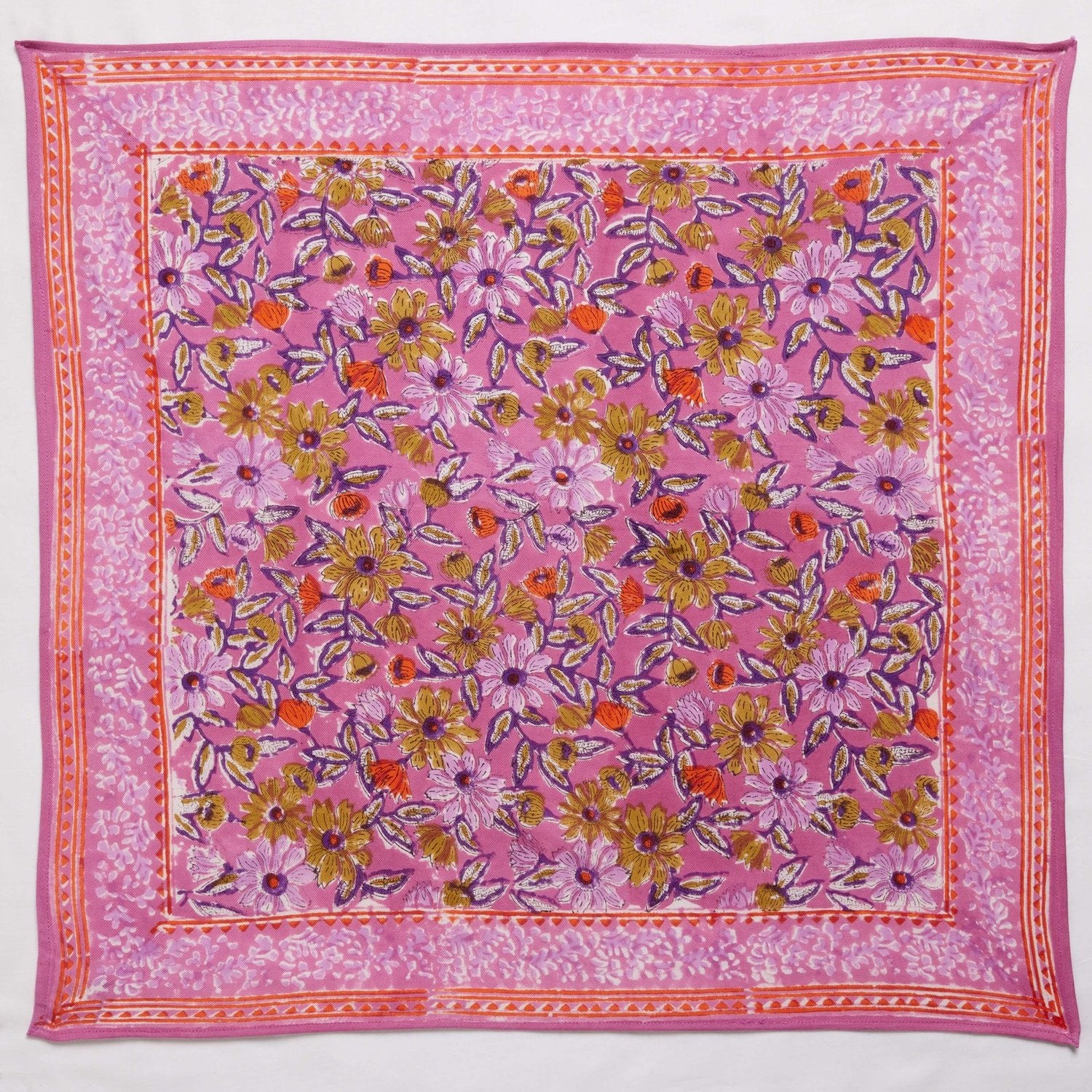Foulard imprimé fleurs avec la technique indienne du blockprint