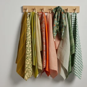 Lot de 2 - un torchon fleuri, un torchon rayé