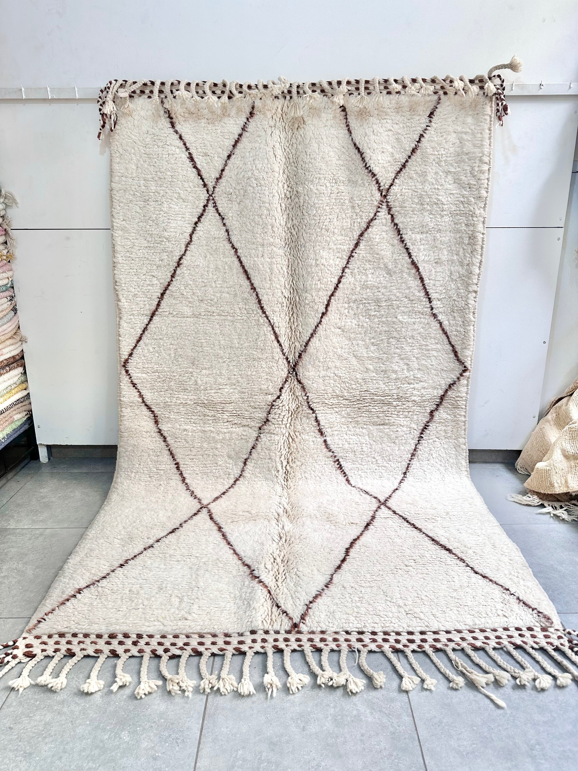 Pièce unique 100% laine, tissée à la main au Maroc dans les montagnes de l'Atlas.