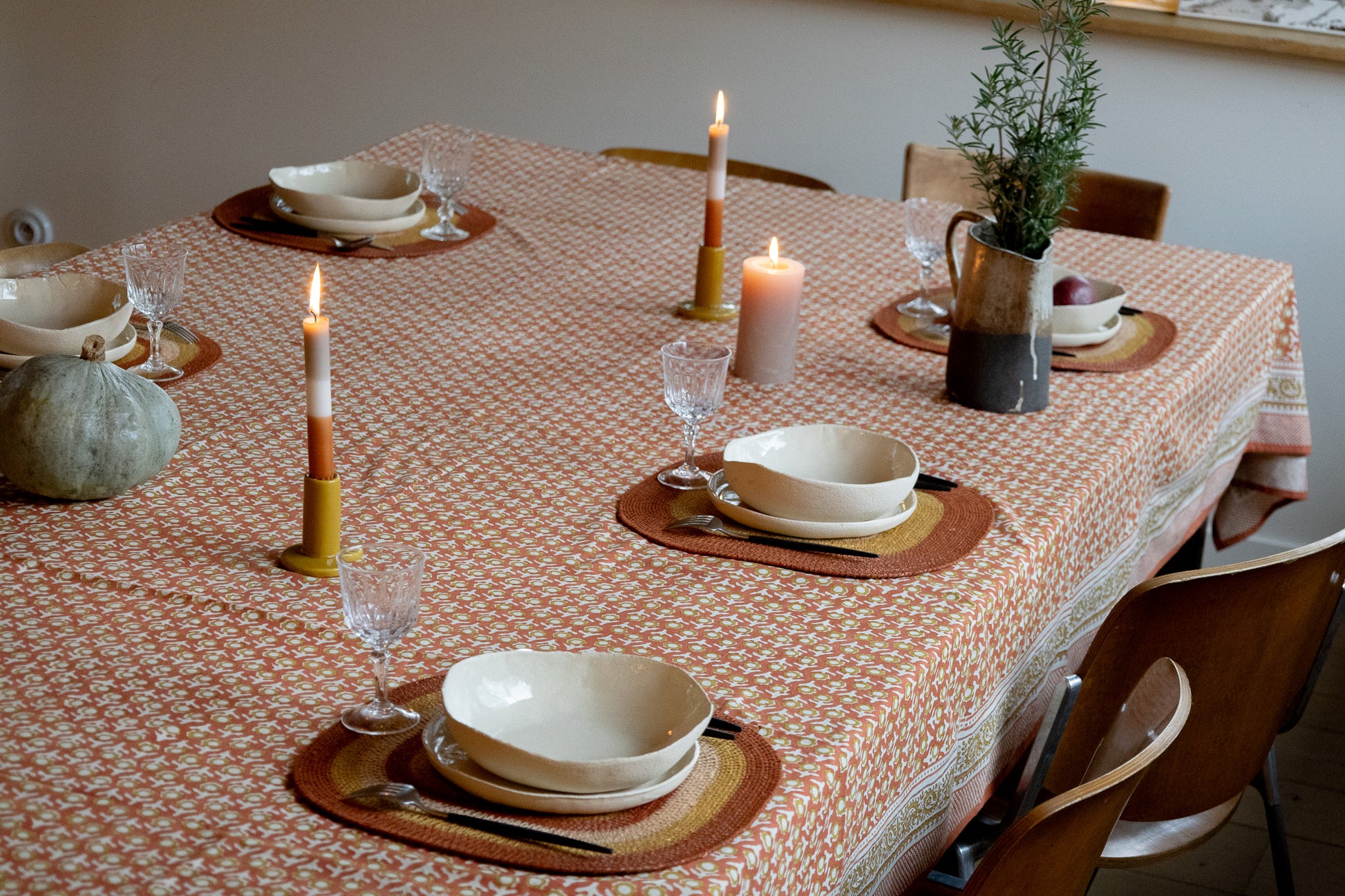 Nappe 100 % coton imprimée à la main en Inde avec la technique traditionnelle du blockprint