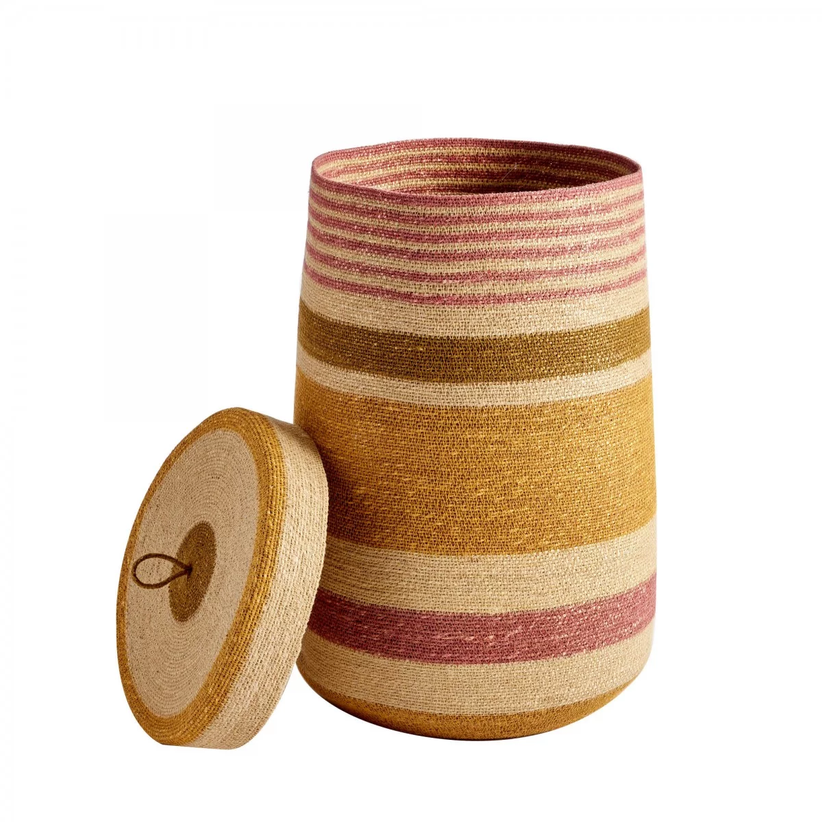 Panier couvercle tissé mais rose M