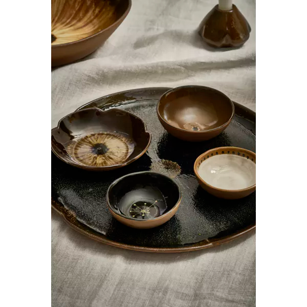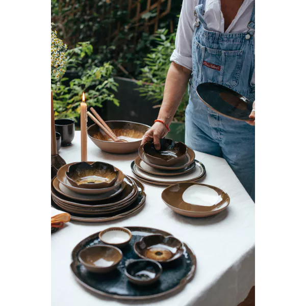 Plat en grès décoré à la main en collaboration avec l’artiste française Sophie Casier