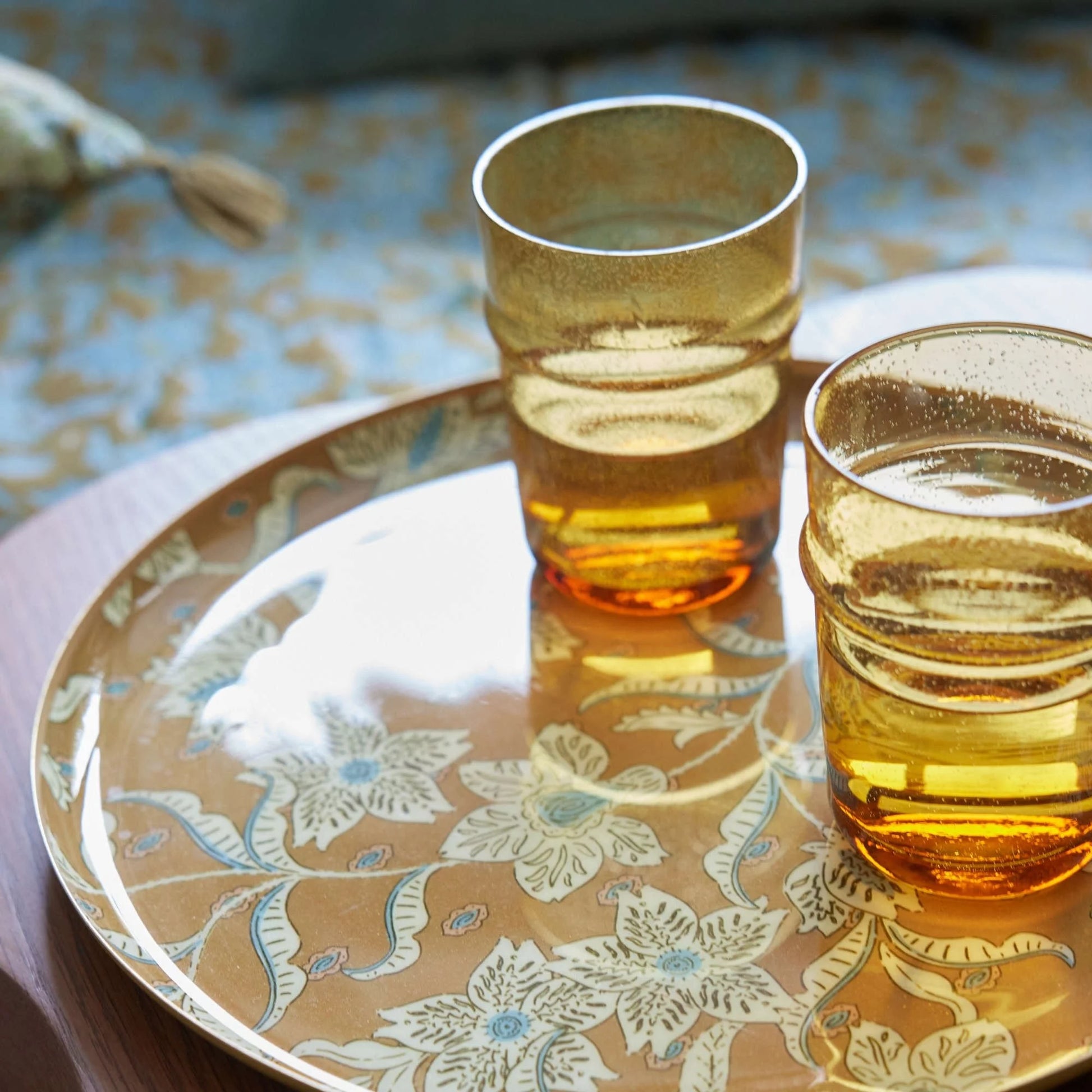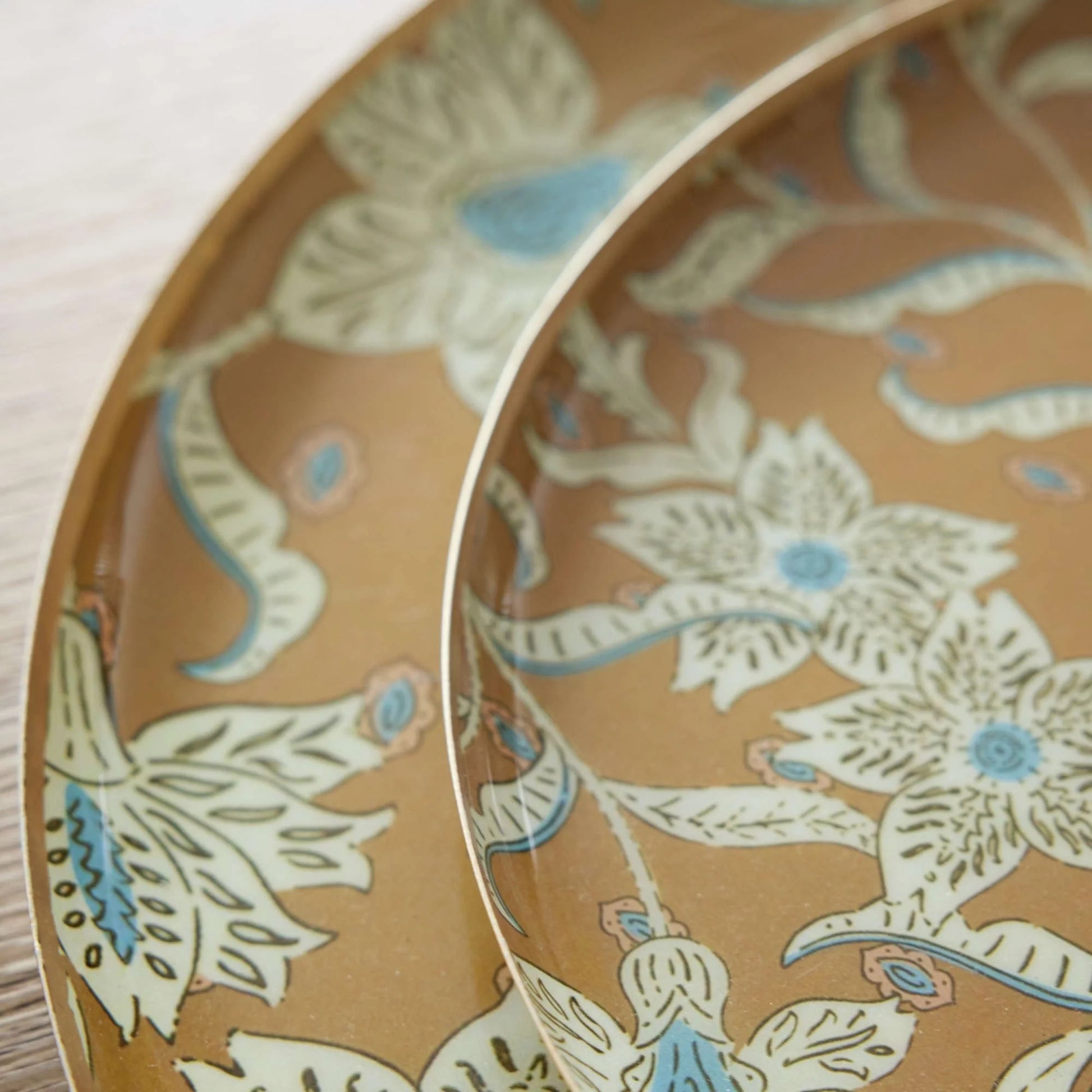 Chaque pièce est unique : la bordure dorée est appliquée à la main par des artisans indiens, offrant des petites irrégularités qui font tout leur charme et leur authenticité.