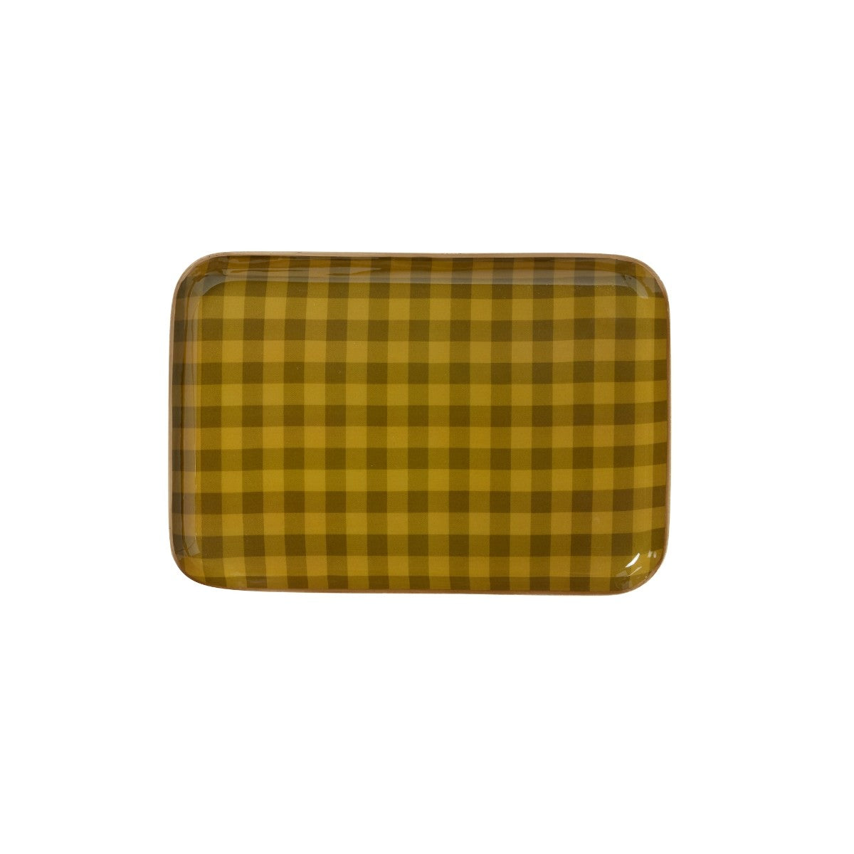Plateaux conçus en métal émaillé avec une bordure dorée à la main. C’est une pièce unique, façonnée des mains des artisans Indiens ce qui lui confère des irrégularités.