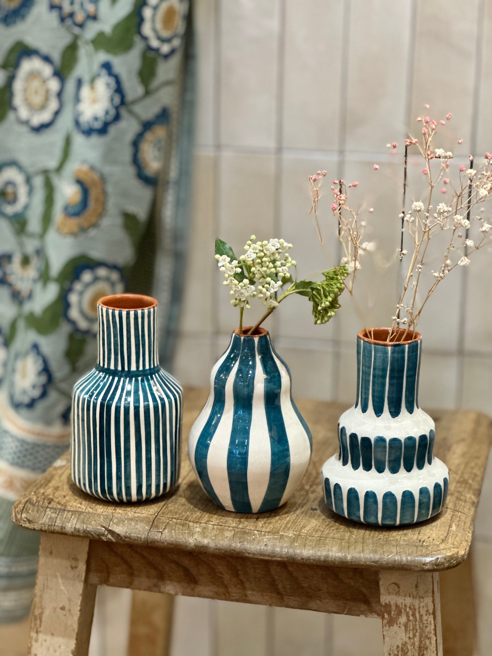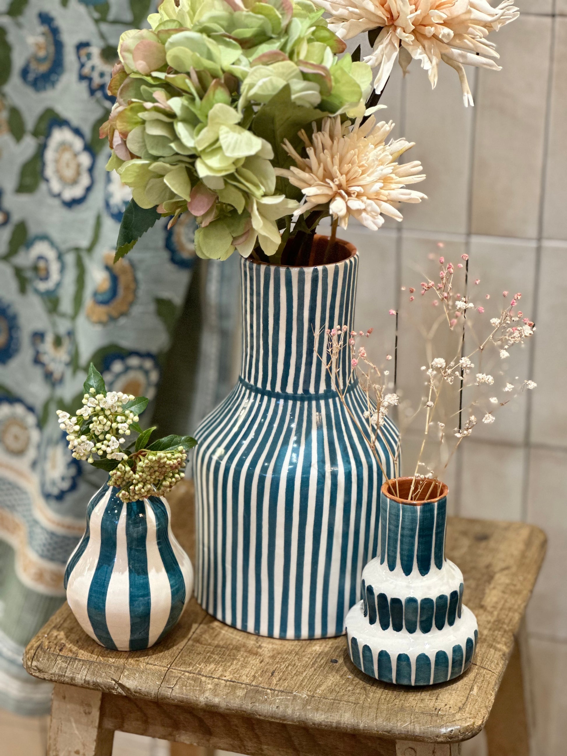 Vase rayure bleu S